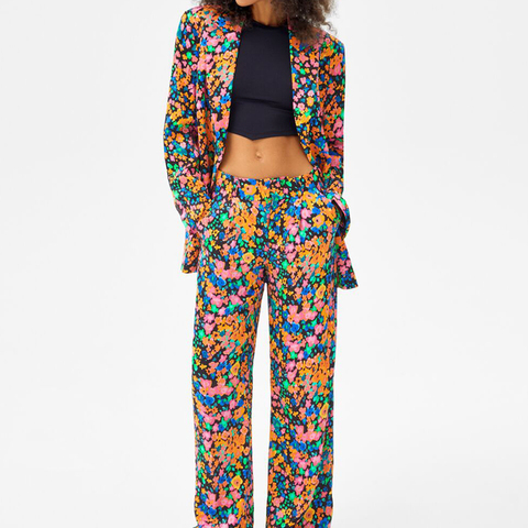 Nova Chegada Primavera Outono Flor Imprimir Forro Casaco Jaqueta Só Botão Bolsos Manga Longa Lapela Blazer para Desgaste Casual