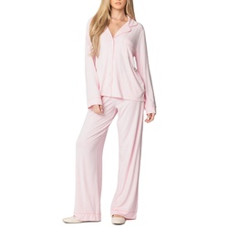 Женский комплект одежды с эластичным поясом с логотипом на заказ, рубашка с длинными рукавами и пуговицами, прямые брюки, повседневный трикотажный пижамный комплект